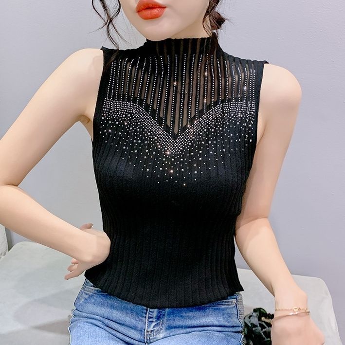 Women’s Ribbed Suspender Vest – Slim-Fit Sleeveless Knit Tank Top, ...