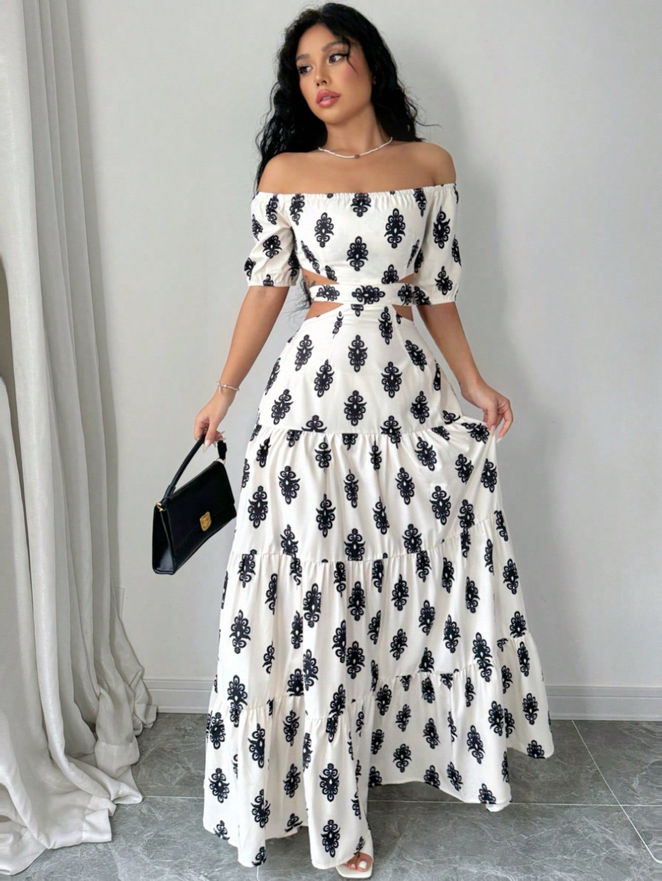 The Bohemian Breeze | Women's Printed V-Neck Short-Sleeve Midi Dress