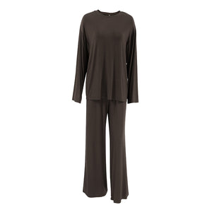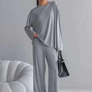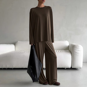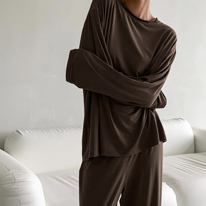 The Modal Comfort | Solid Color Round-Neck Long-Sleeve Top & Pants Pajama Set