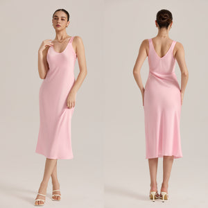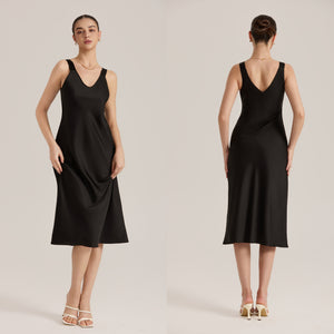 Many women crave sleepwear that feels irresistibly sexy, silky, and cool for warm nights or intimate evenings without being too heavy or restrictive. Our Solid Color V-Neck Sleeveless Satin Maxi Slip Sleep Dress delivers ultra-thin satin chiffon polyester with a sleek slip silhouette and wide straps for confident sensual allure and luxurious comfort.