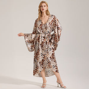 The Wild Luxe | Leopard Print Satin Long Robe Sleepwear