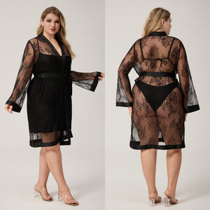 The Lace Seduction | Women's Plus-Size Lace Short Robe