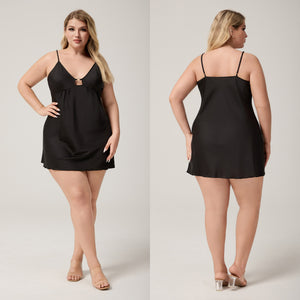 The Noir Desire | Women's Plus-Size Satin Suspender Chemise Nightdress