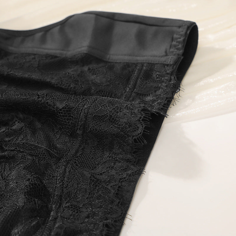 Crafted from seamless nylon-spandex blend with embroidered lace edges, it offers gentle elasticity, all-day freshness, and natural shaping without wires. Fixed double straps ensure secure comfort, while the vest-style design provides wireless gather and anti-sag lift.