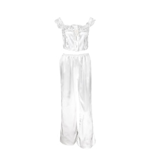 The Ivory Muse | Sleeveless Knitted Lace & Faux Silk 2-Piece Set