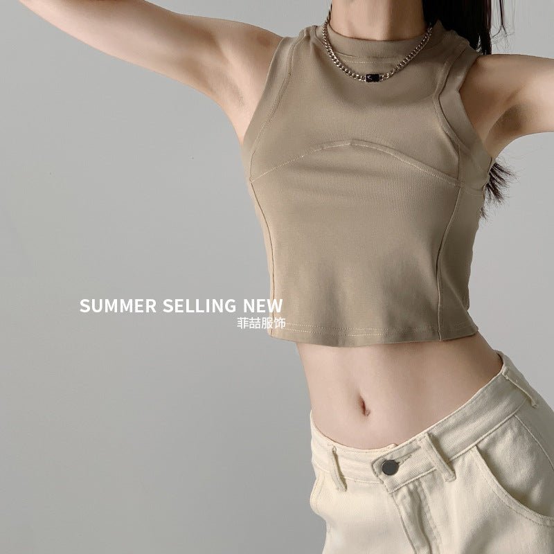 2025 new elegant solid color neck lace lace vest T-shirt slim and t...