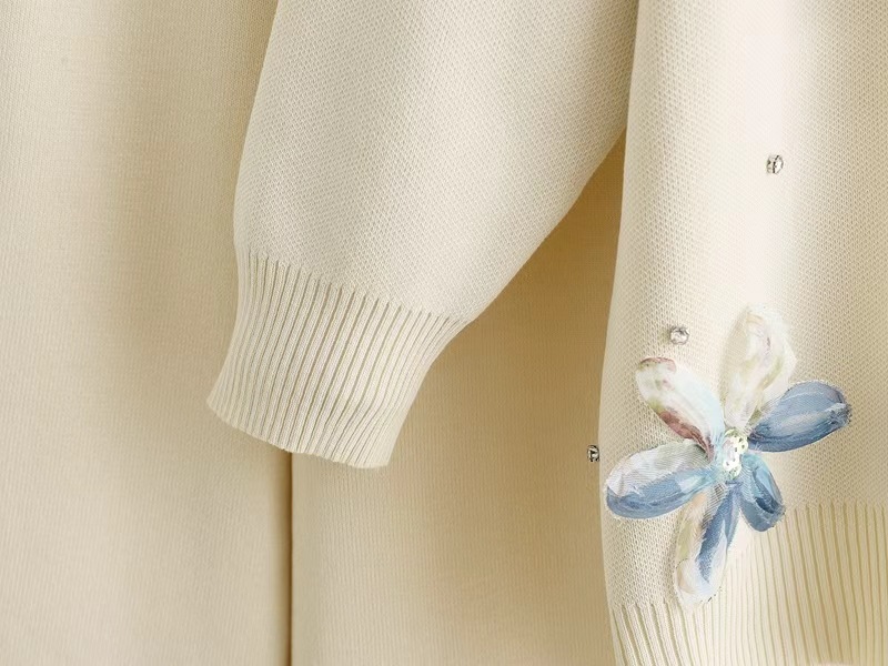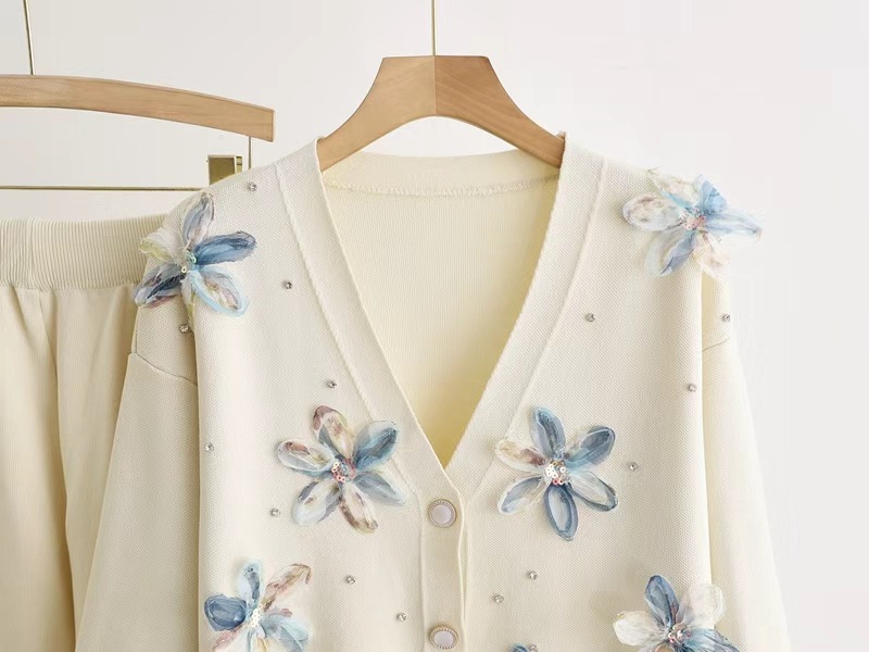 Long-sleeved knitted two-piece set three-dimensional butterfly top wide-leg pants set