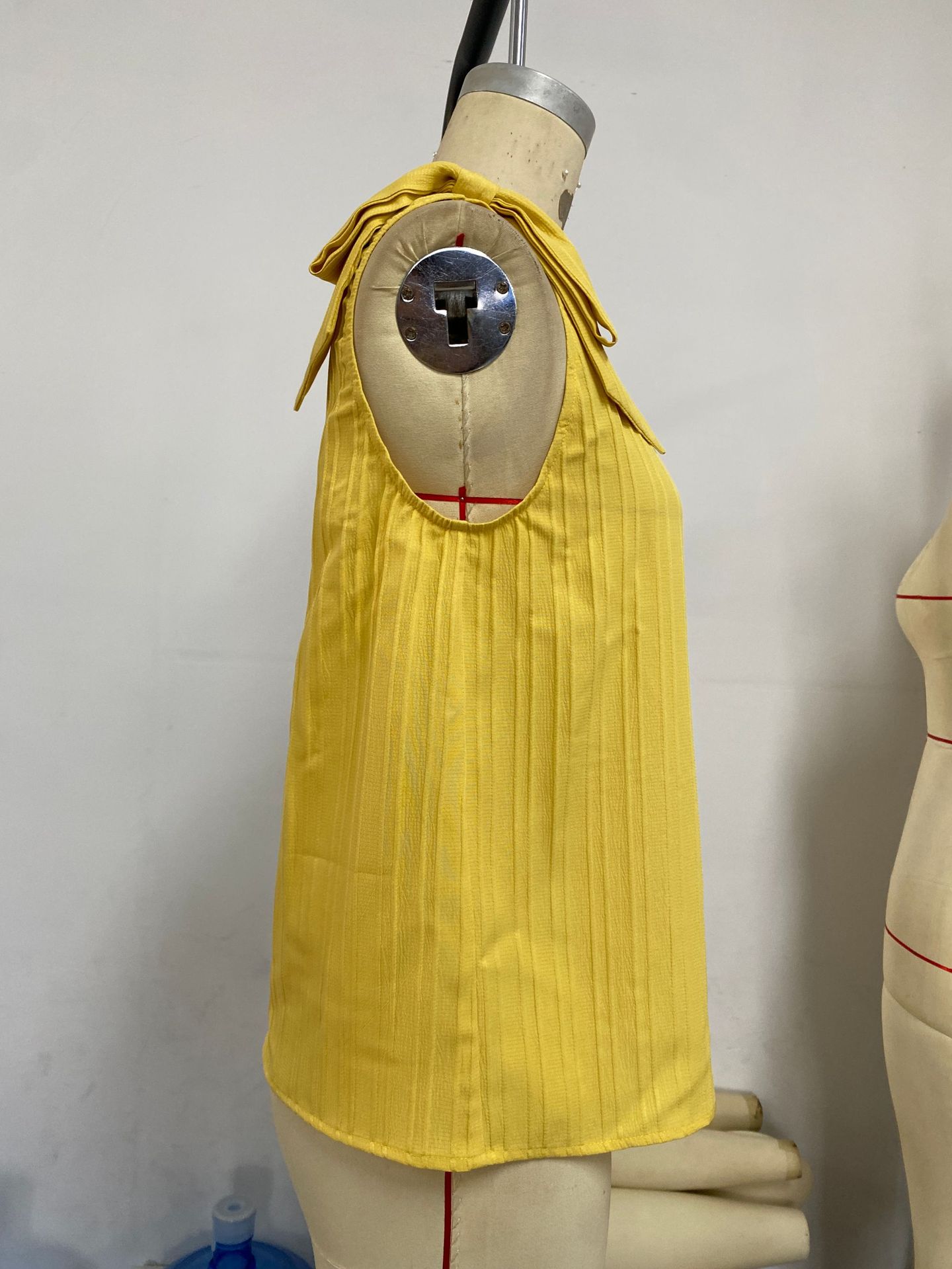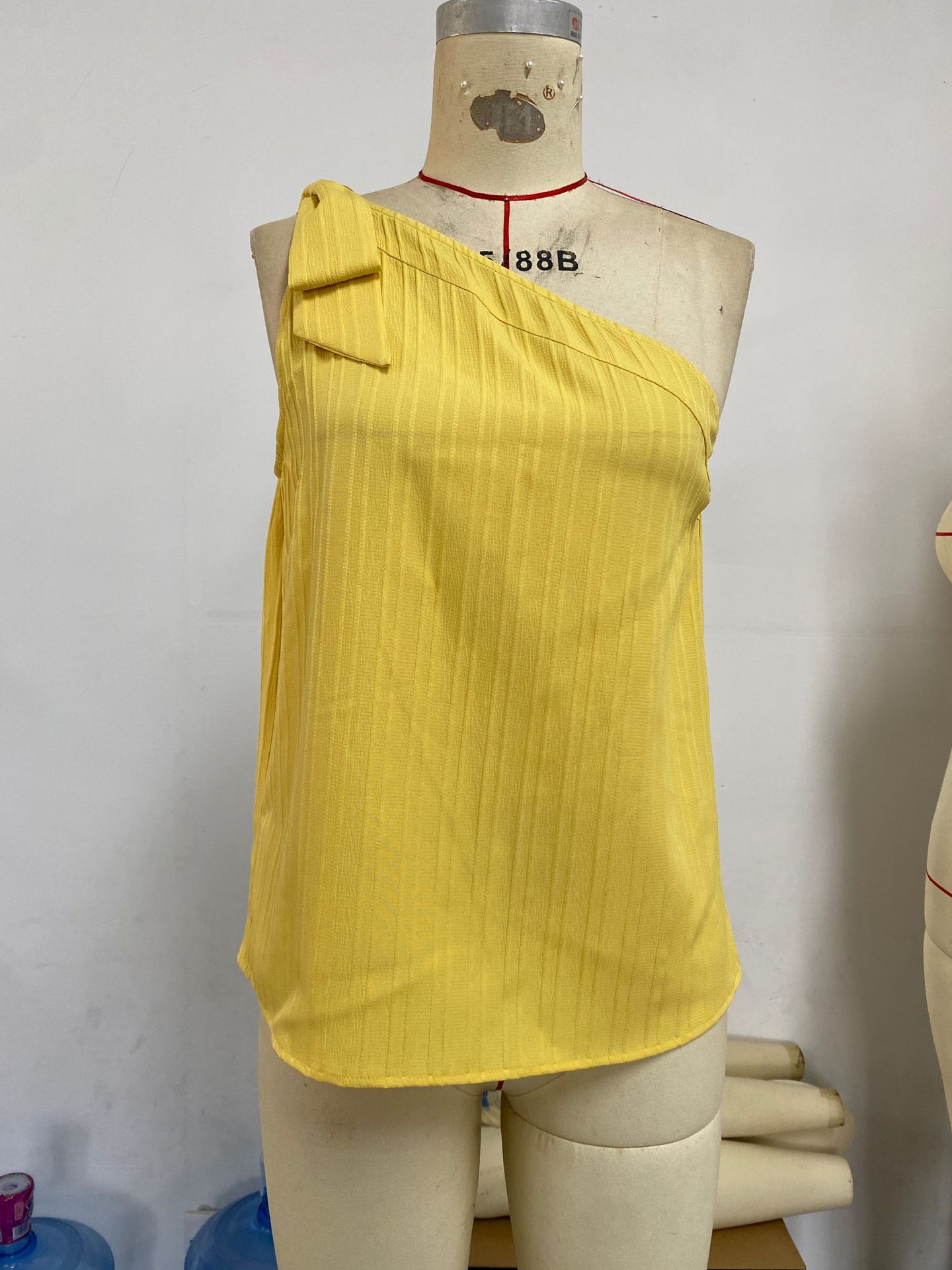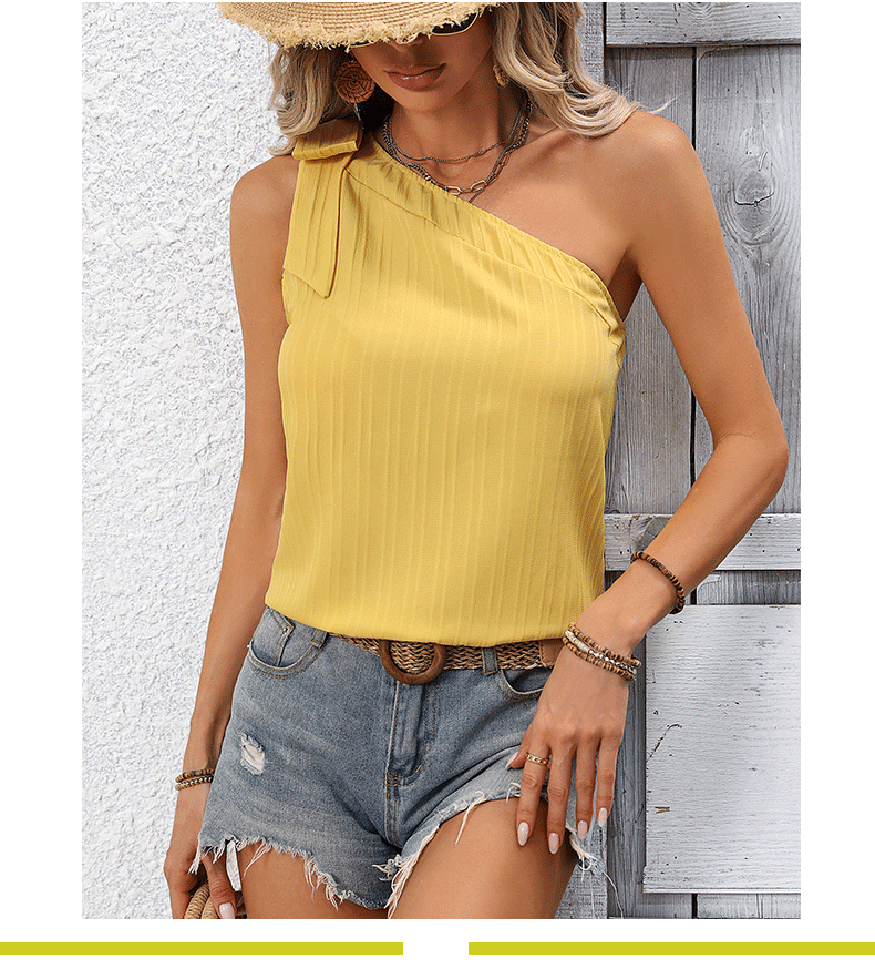 Bows slanted shoulder small vest summer vacation style single shoulder sleeveless top