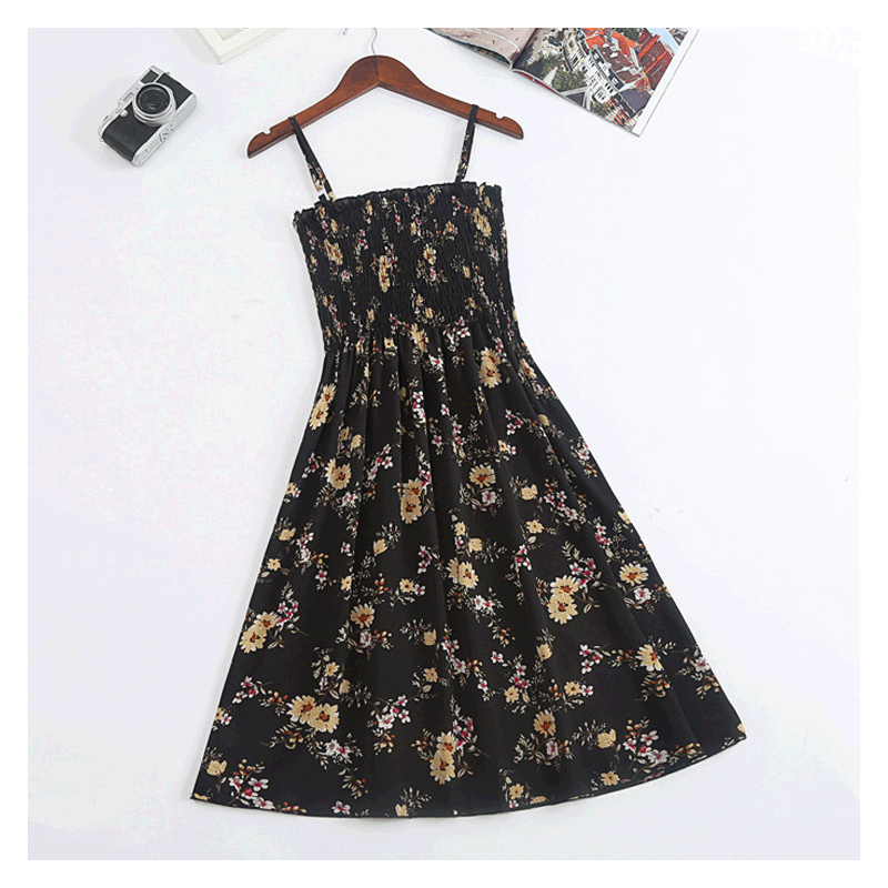 Summer new floral dress waist thin retro temperament suspender skirt - Negative Apparel