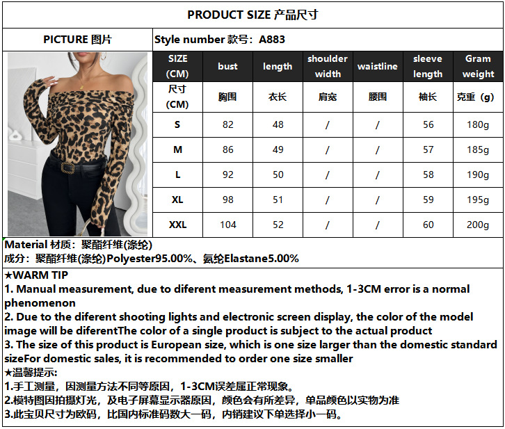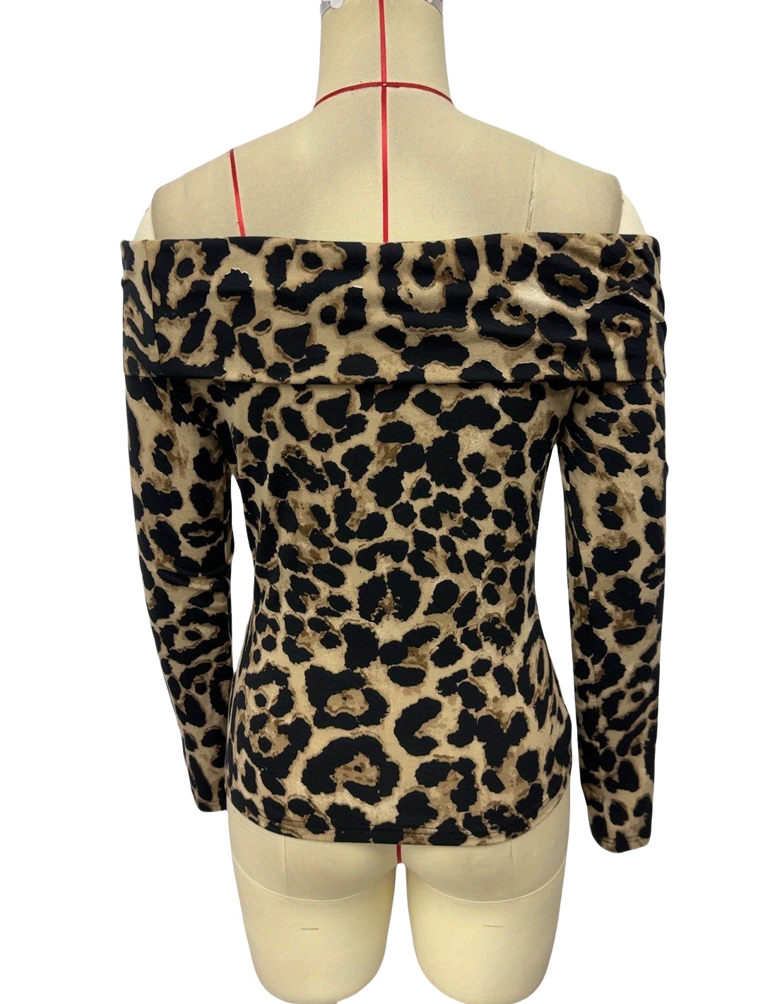 Women's sexy leopard print off-the-shoulder long-sleeved T-shirt