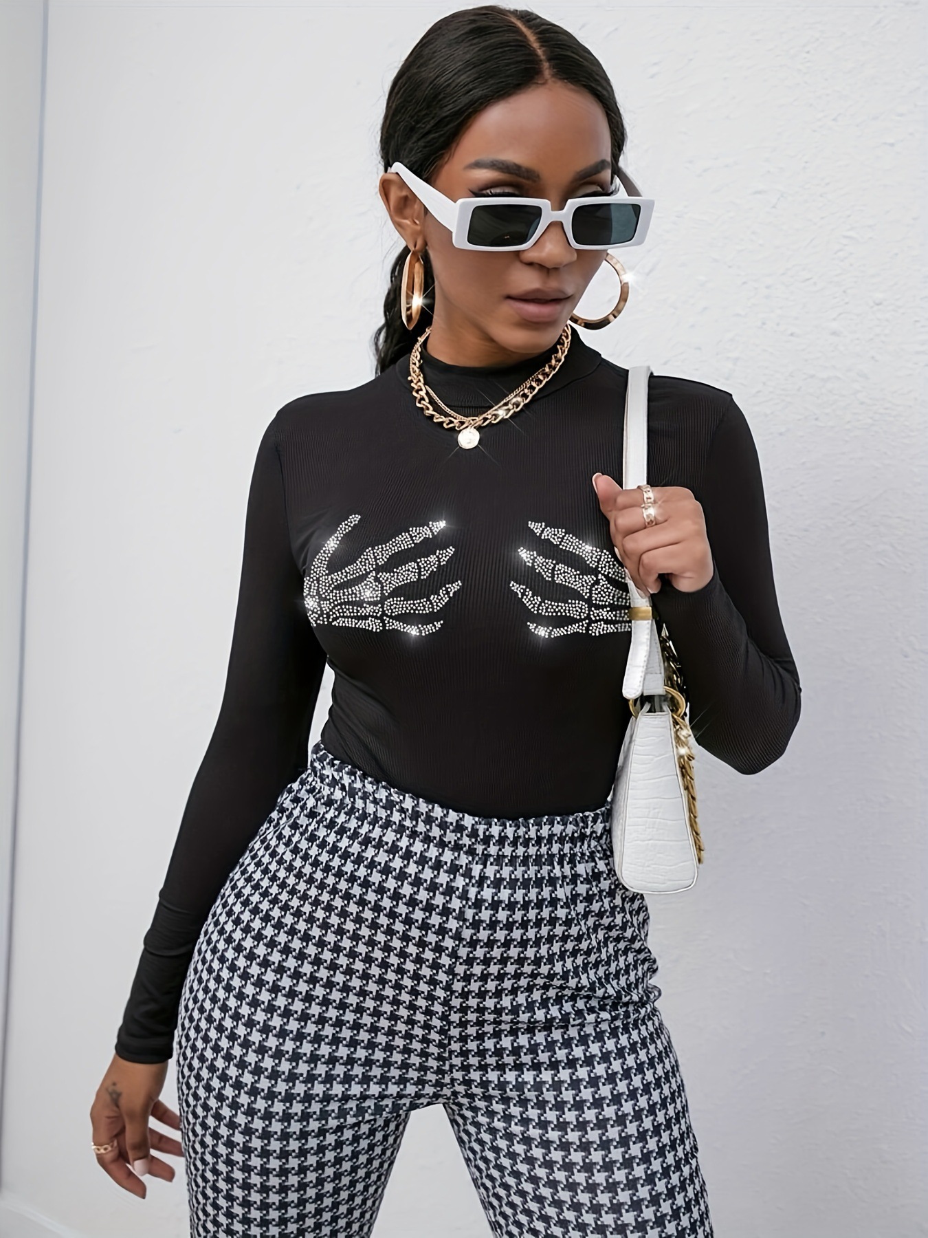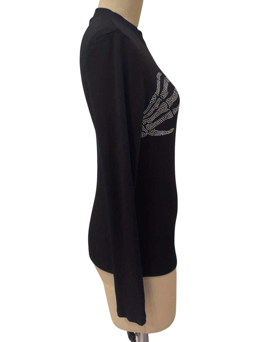 spring 2025 new ribbed knitted fashion skull hot diamond T-shirt top women