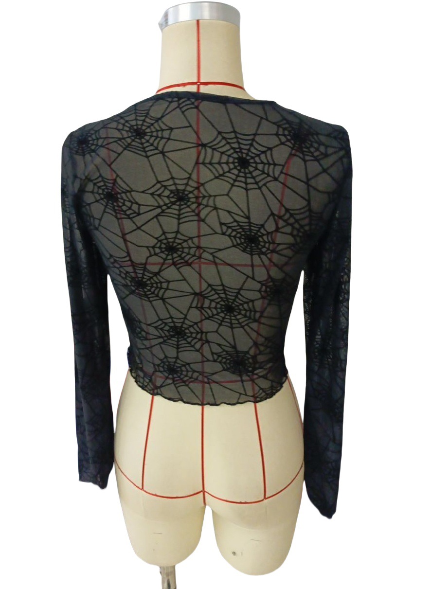 Women's black transparent fungus edge spider web T-shirt top women's clothing