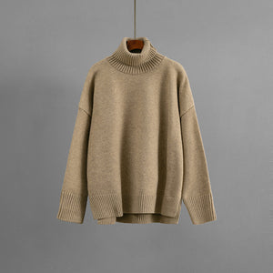 New casual loose and versatile pullover turtleneck solid color sweater top women
