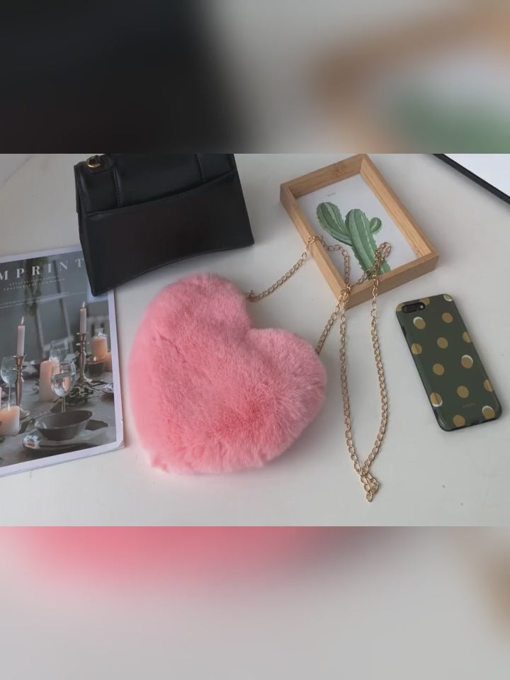 Heart-Shaped Mini Fluffy Shoulder Bag with Chain Crossbody & Cute Zipper Purse